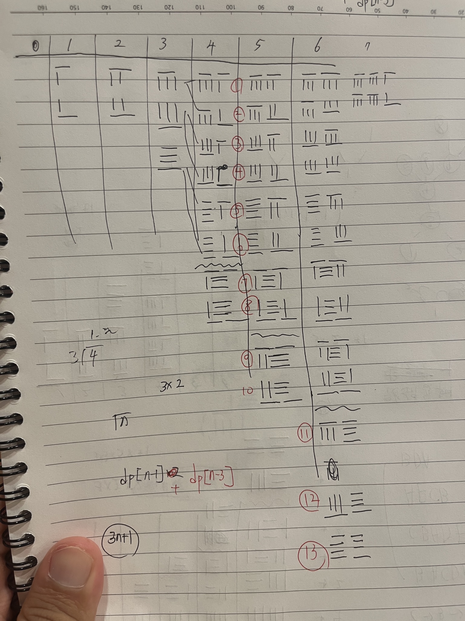 dp[i] = dp[i-1]+dp[i-3]