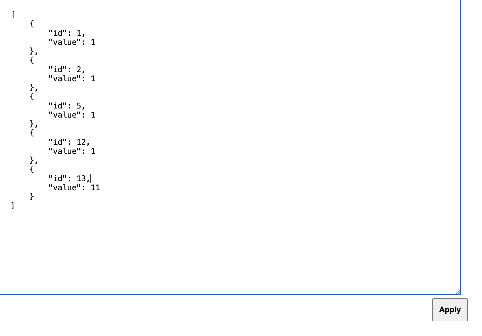 const newItems = JSON.parse($editorTextArea.value);