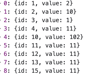 위의 객체를 items 라고 명명했을 때,