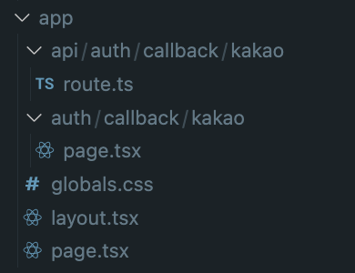 - app 폴더에 /auth/callback/kakao/page.tsx를 만들어줌.